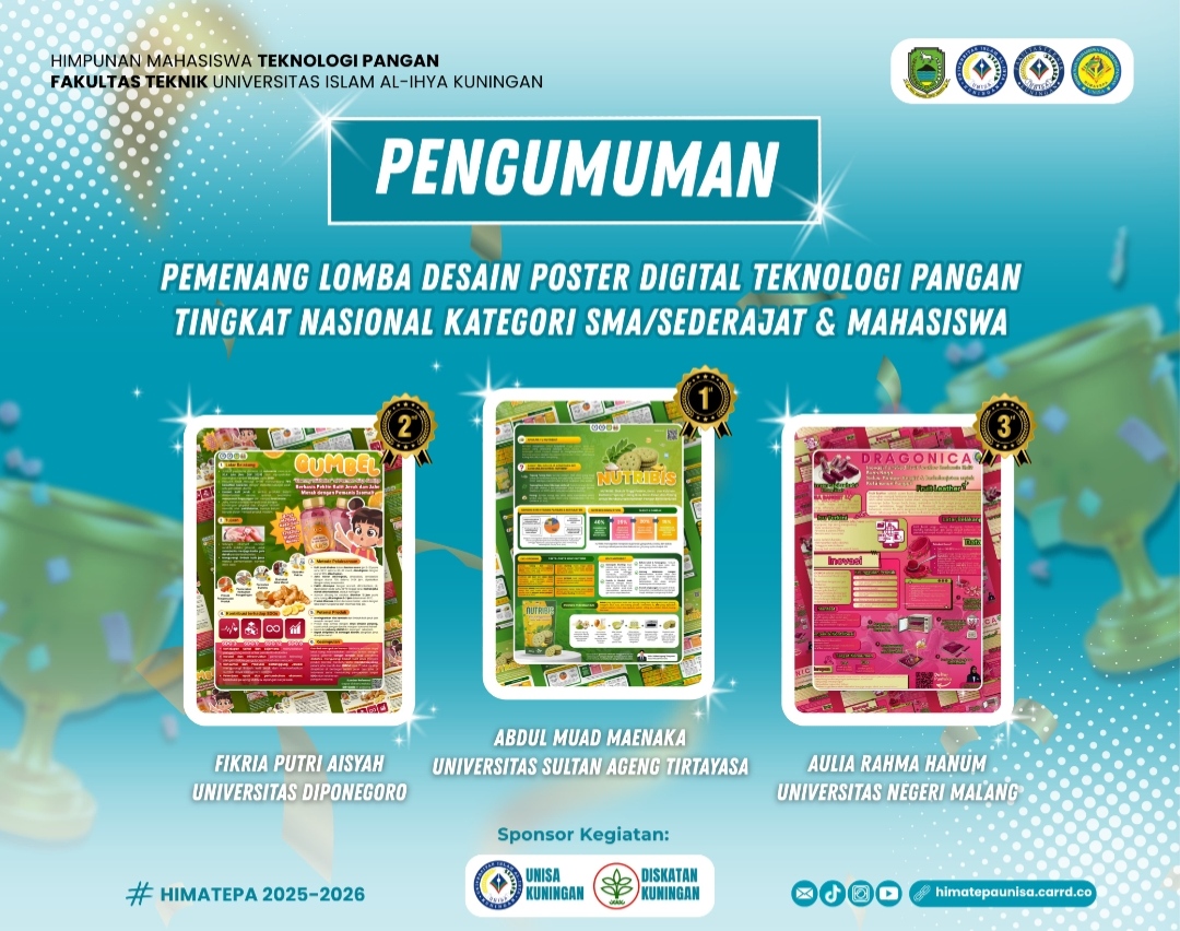 KUNINGAN,(VOX) – Himpunan Mahasiswa Teknologi Pangan Universitas Islam Al-Ihya (HIMATEPA UNISA) Kuningan sukses menggelar Lomba Desain Poster Digital Teknologi Pangan tingkat nasional tahun 2026 dengan antusiasme tinggi dari peserta di seluruh Indonesia.