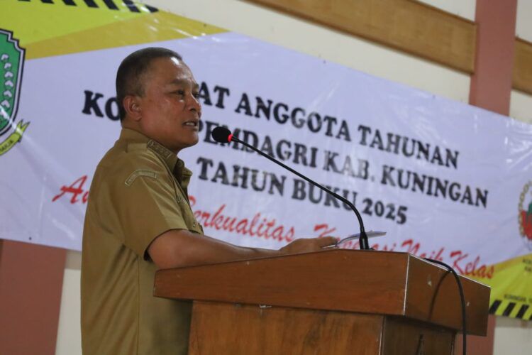 KUNINGAN(VOX) – Bupati Kuningan Dian Rachmat Yanuar menegaskan pentingnya transformasi koperasi agar mampu beradaptasi dengan perkembangan zaman dan teknologi. Pesan tersebut disampaikannya saat menghadiri Rapat Anggota Tahunan (RAT) Koperasi Konsumen Karyawan Pemerintah Daerah (KOKAPPEMDAGRI) Kabupaten Kuningan Tahun Buku 2023, Selasa (10/2/2026) yang diikuti ratusan anggota dari kalangan aparatur sipil negara (ASN).