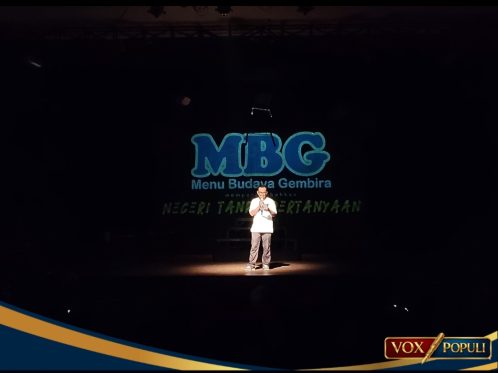 SeniKUNINGAN,(VOX) – Riuh tepuk tangan yang menggema di Gedung Kesenian Raksawacana, Minggu (26/4/2026), bukan sekadar bentuk apresiasi. Lebih dari itu, ia menjadi penanda bahwa publik Kuningan sedang “disadarkan” oleh sebuah pertunjukan seni bertajuk Menu Budaya Gembira (MBG). Di balik gemerlap kolaborasi lintas disiplin, terselip satu pesan yang terasa menggigit: bagaimana jika sebuah negeri kehilangan keberanian […]
