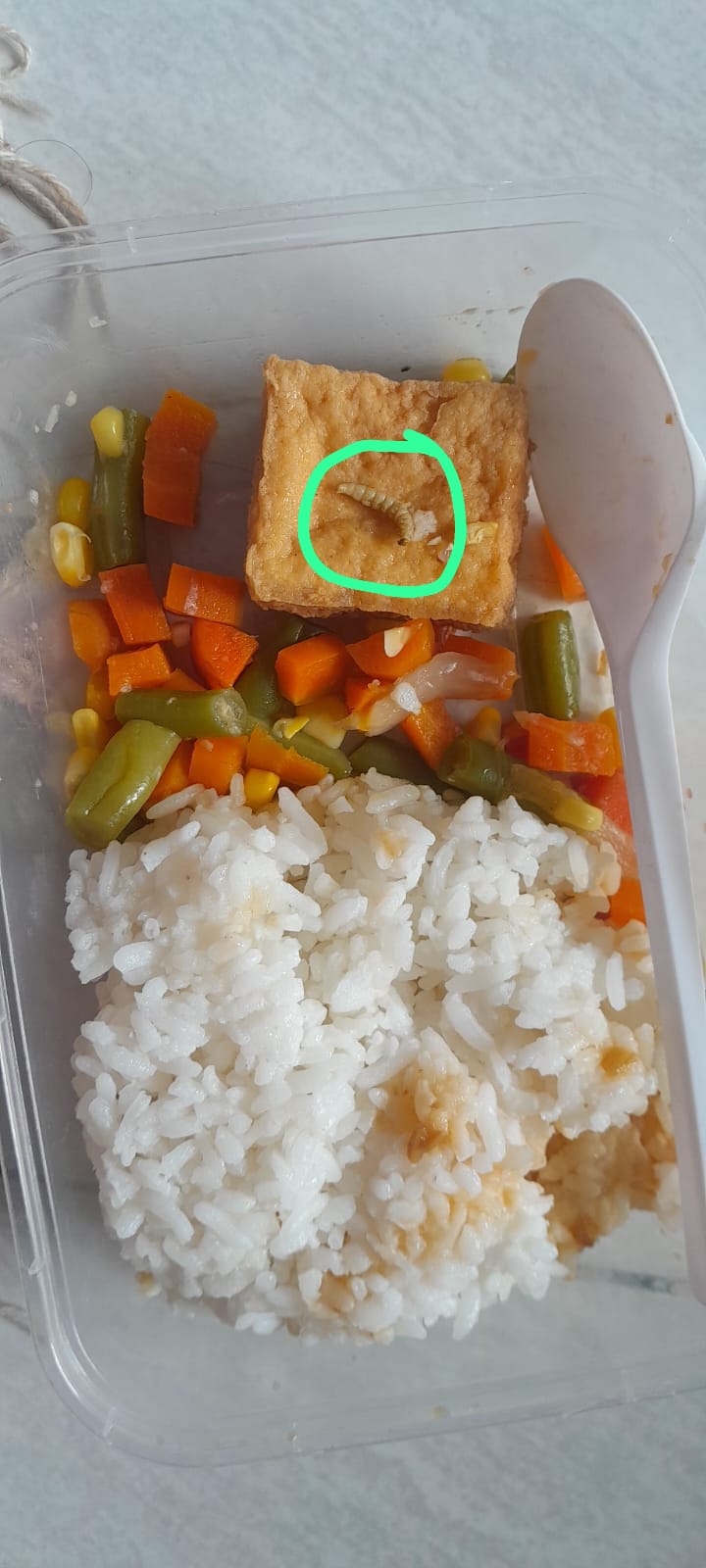 Dalam pesan yang beredar, terlihat sebuah kotak makanan berisi nasi, sayuran, dan tahu. Namun pada bagian atas lauk, tampak seekor ulat yang menempel di makanan tersebut. Wali murid yang membagikan informasi itu meminta agar orang tua lainnya segera memeriksa makanan yang dibawa pulang oleh anak-anak mereka.
