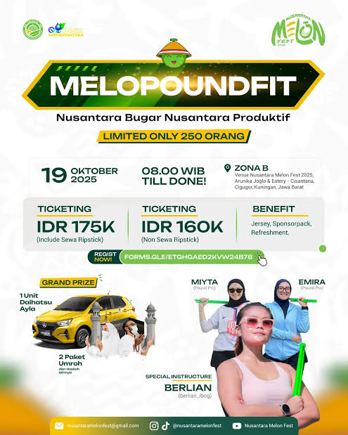 KUNINGAN, (VOX) – Rencana gelaran Nusantara Melon Fest 2025 yang dijanjikan sebagai festival besar dengan rangkaian acara Wayang Golek, olahraga Melopoundfit, ajang lari MeloRun, hingga penampilan musik NDX A.K.A dan Lala Widi, kini menimbulkan tanda tanya besar.