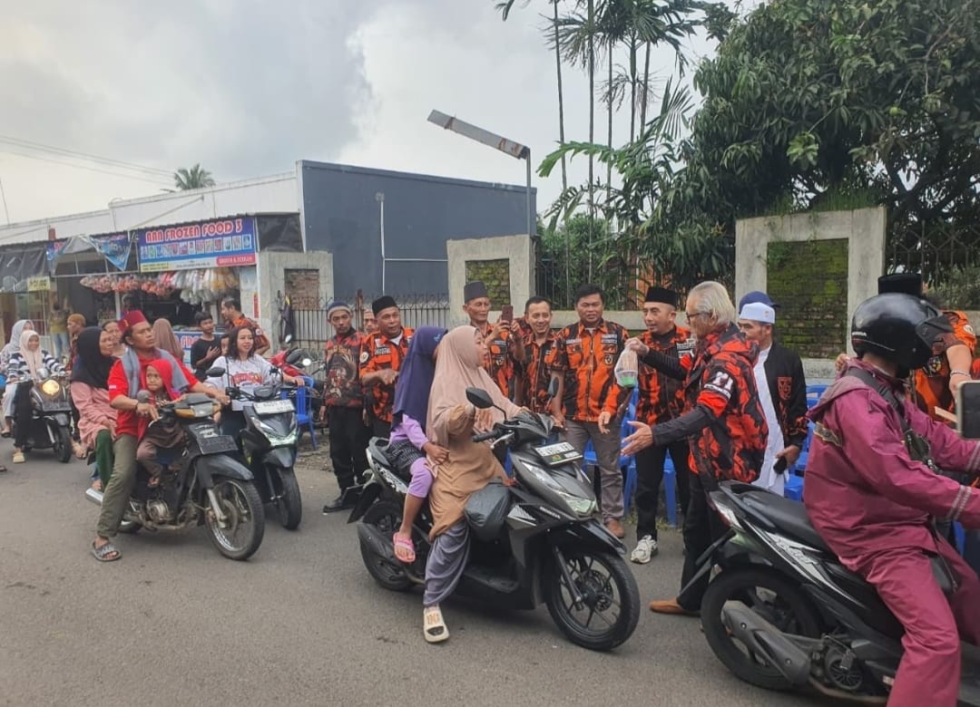 VOXNEWS. ID, Kuningan – Pimpinan Anak Cabang (PAC) Pemuda Pancasila Kecamatan Cigandamekar menggelar kegiatan sosial berbagi takjil kepada masyarakat pada Minggu (8/3/2026). Kegiatan yang berlangsung penuh kebersamaan ini turut dihadiri langsung oleh Ketua MPC Pemuda Pancasila Kabupaten Kuningan beserta jajaran pengurus.