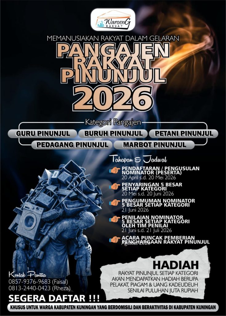 Sebagai informasi, Pangajen Rakyat Pinunjul Taun 2026 merupakan ajang penghargaan bagi sosok-sosok inspiratif di Kabupaten Kuningan. Mereka adalah individu yang, meskipun hidup dalam keterbatasan, mampu menjadi pahlawan bagi keluarga maupun lingkungan sekitar.