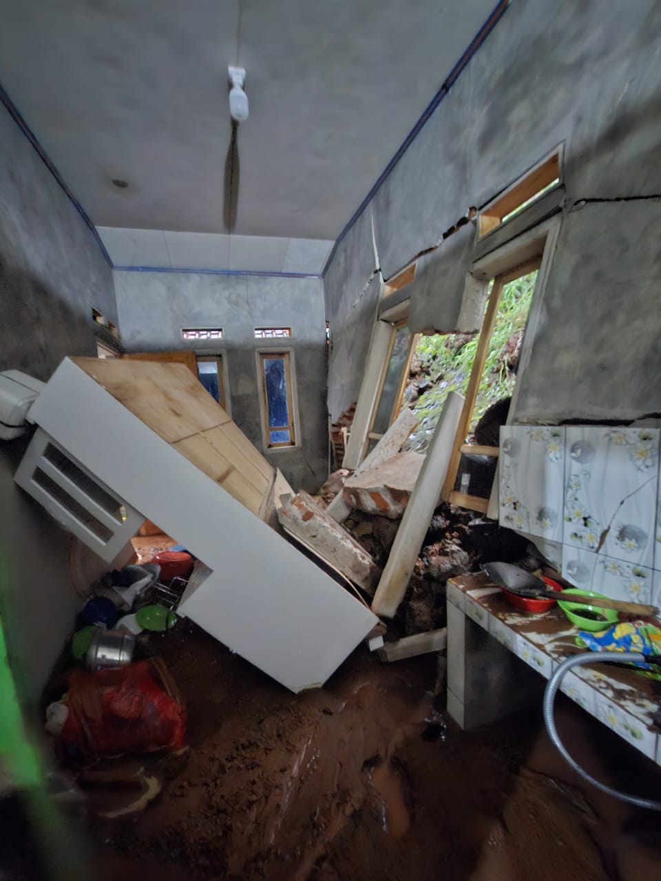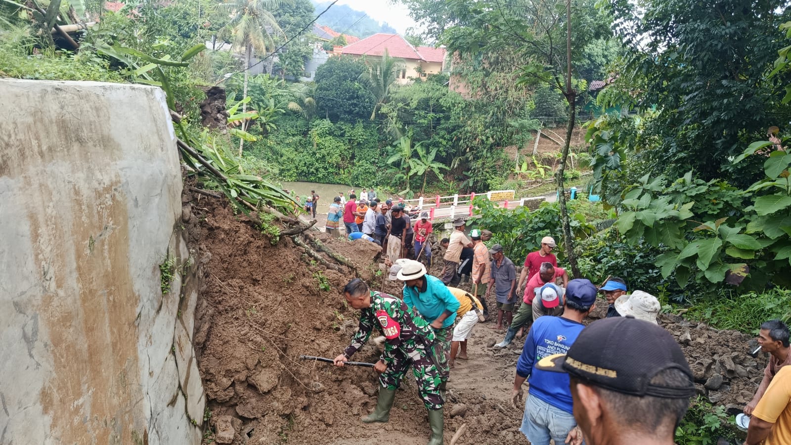 Tanah Longsor Terjang Ciwaru Kuningan, Serka Jamal : Tiga Titik Terdampak, Satu Rumah Warga Rusak