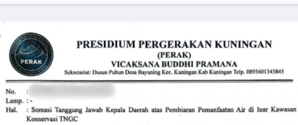 Somasi Terbuka Dilayangkan ke Bupati Kuningan Soal Pemanfaatan Mata Air Cipujangga di Tanah Pribadi